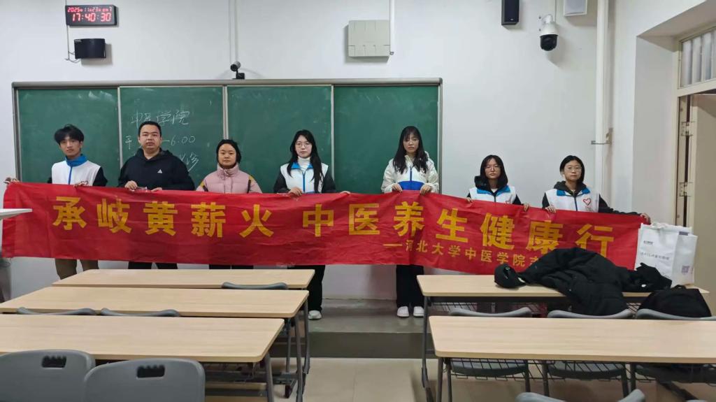 11月23日下午,河北大学中医学院青年志愿者分队在南院第八教学楼教室开展了“承岐黄薪火,中医养生健康行”义诊活动。此次活动旨在服务师生健康需求,科普健康生活方式并弘扬中医药文化。