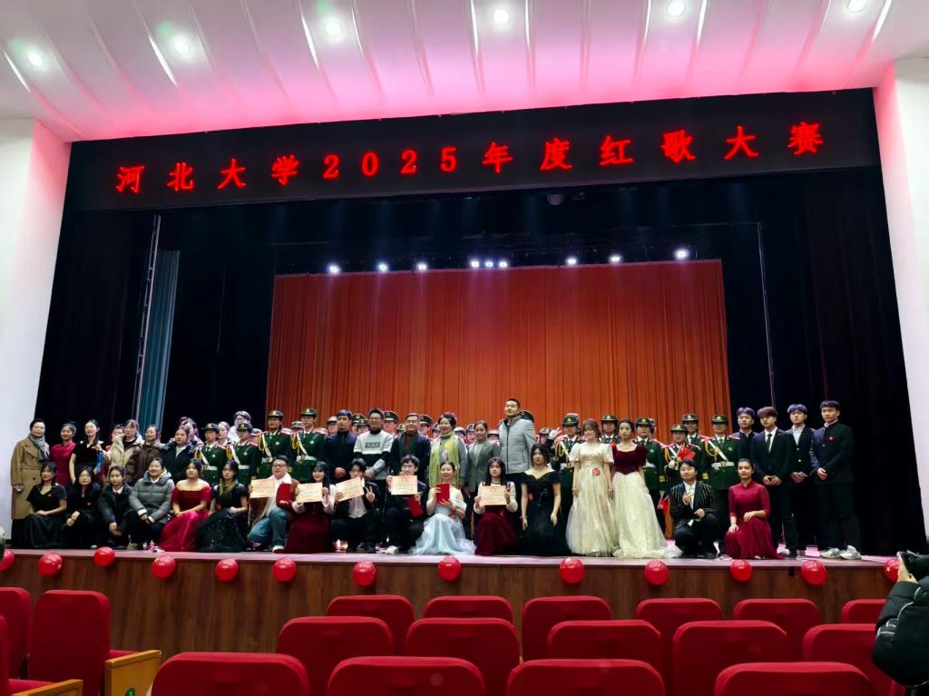 2025年12月6日,“弦歌不辍赞祖国 韶华逐梦续荣光”河北大学 2025 年度红歌大赛决赛在河北大学七一路校区邯郸音乐厅圆满落幕。8个身影,6段赤诚歌声,2抹红绸舞动,中医学院学子以两曲《最可爱的人》和《唱支山歌给党听》震撼全场,从全校17支参赛队伍中脱颖而出,最终斩获全校二等奖! 从比赛组织人员中医学院团委书记侯晓男、中医学院团委老师张朔嘉、学生会主席孙孟伦的全程指导陪伴,到参赛选手们的全情演绎,再到后勤工作人员们的默默守护,中医学院全体成员以"君臣佐使"的协作智慧,将岐黄薪火融入红色旋律,让"大医精诚"的院训与英雄赞歌同频共振,谱写了一曲属于新时代中医青年的热血华章。